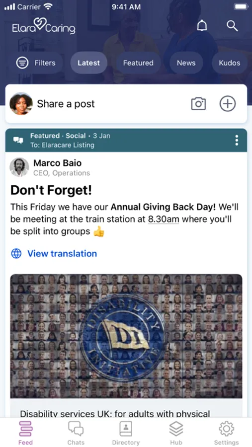 Elara Caring PCS Team Members can now connect with local teams; access Workday, paystubs, Relias and other application interfaces; and stay up to date on company communications and announcements. Welcome to a space where you can be part of the daily real-time conversation of care!