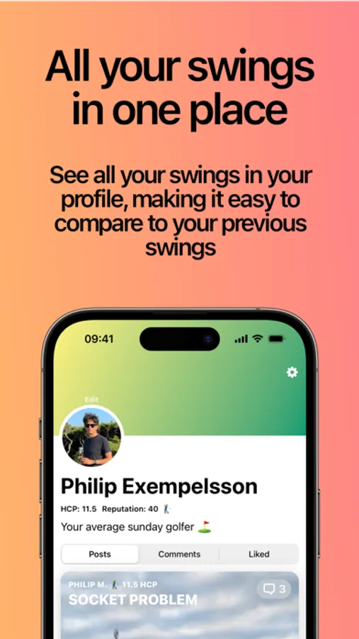 All your uploaded swings will be available in your profile. There you can easily find all your swings instead of scrolling through all of your images. Having all your swings and tips from other golfers in one place makes it easier to track your progress and swing changes over time.