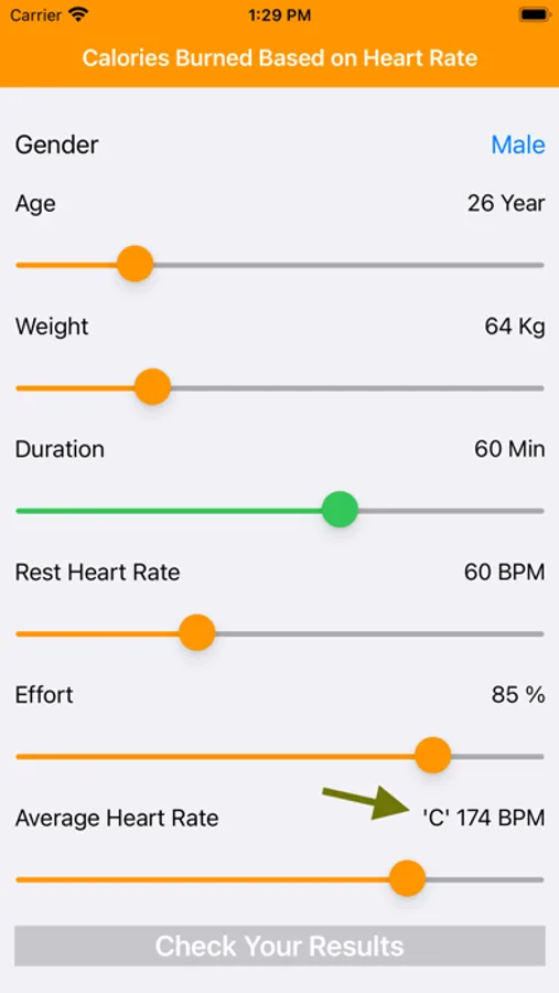 A simple Calculator to calculate the Gross Calories burned, Weight loss and Average Heart Rate for the trainee.
