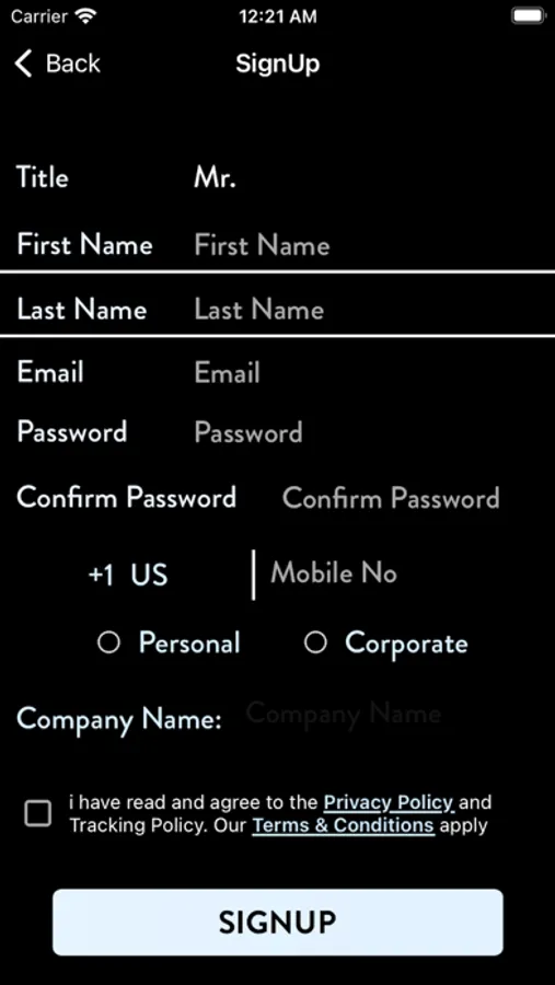 • BCL Chauffeur app takes chauffeur’s detailed information before registering them with BCL Luxury Limo family.