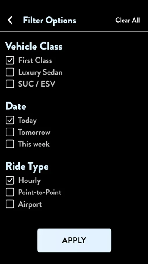 • Choose your desire vehicle class “First class, Suv or luxury sedan”