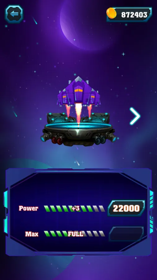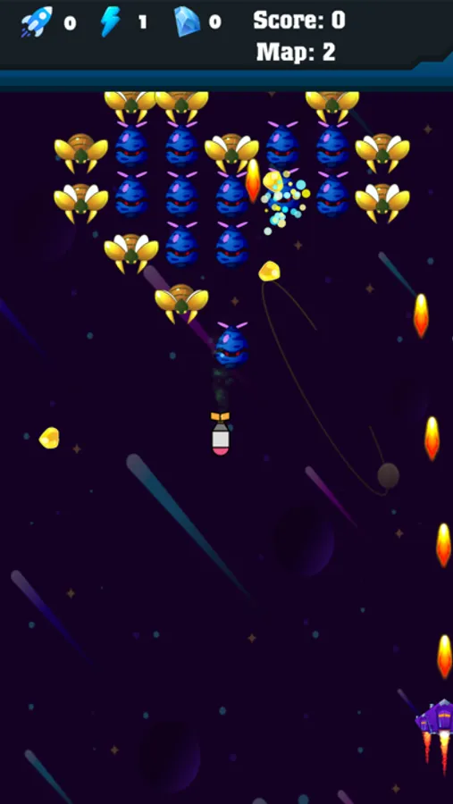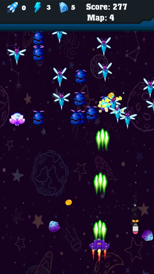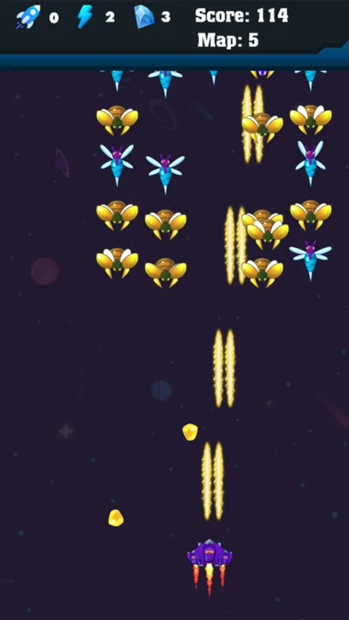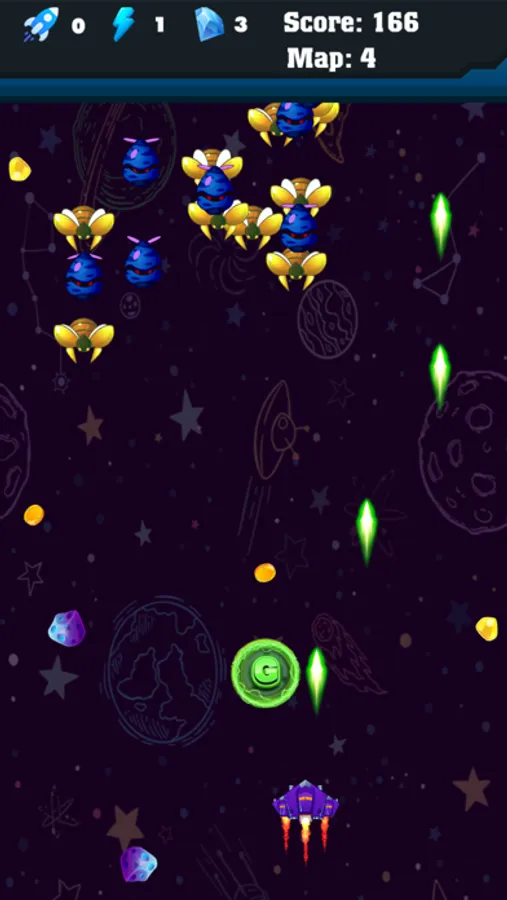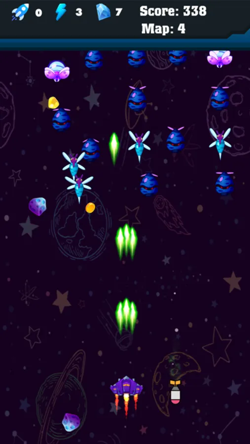 Collect golds and gems and use them to upgrade your space plane and its weapons!