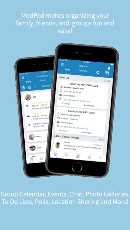 ModPod brings harmony to your Modern Pod, whether it's a family, interest group, friend group, fraternity/sorority, or any other pod that wants to easily organize, communicate, collaborate and have fun. Key features include the group calendar, event management, secure end-to-end encrypted chat, shared to-do and shopping lists, polls, location sharing, photo galleries, member directories, shared contacts (e.g., the family doctor), and calendar synchronization with Google, iCalendar, Outlook, TeamSnap and more. MODPOD IS COMPLETELY FREE.