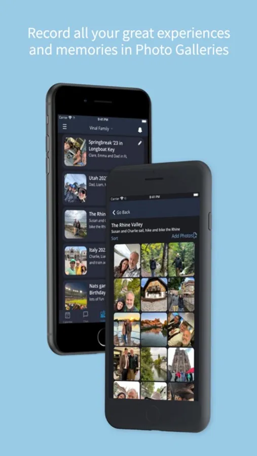 Photo Sharing and Galleries. Photo Galleries allow you to record and share your best memories and experiences. Whether it’s a family trip or a group outing, members can easily upload photos and include optional captions and descriptions. Easily sort photos to tell a better story.