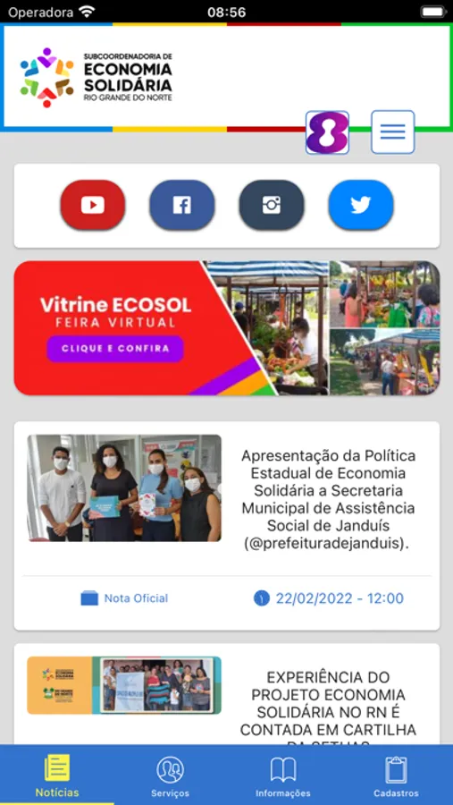 Aplicação Ecosol Digital, aproximando o cidadão do estado do Rio Grande do Norte das ações do Governo do Estado do Rio Grande do Norte.