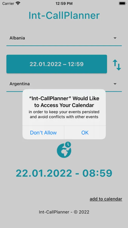 The app calculates the date and time in your selected region, taking into account daylight saving time.