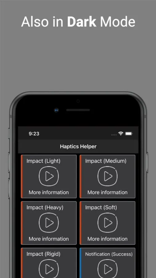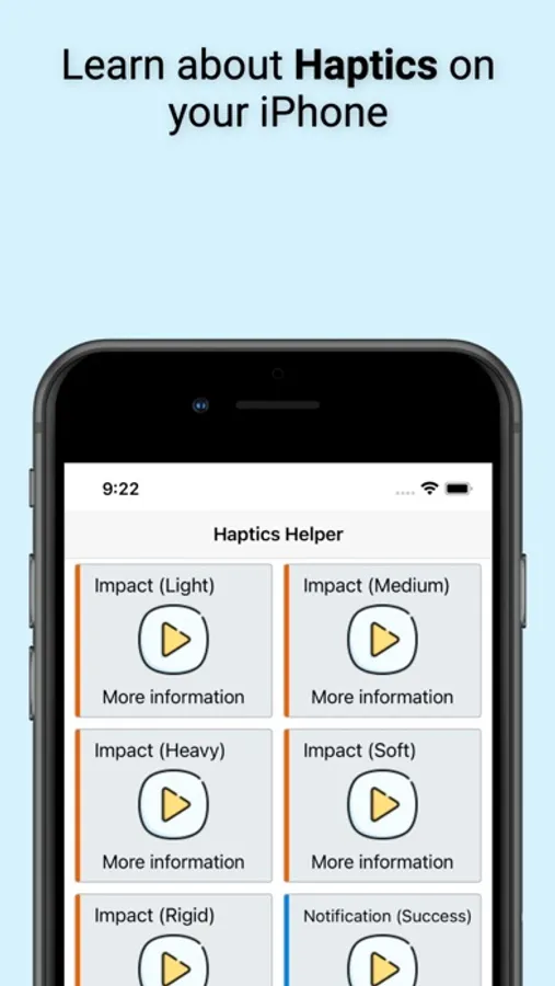 This app was created from the need to help others to feel and see for themselves how haptics can be used. It is difficult to feel these as the current simulator does not support Haptics. This is intended to help developers and designers to see what haptics may be best for their apps.