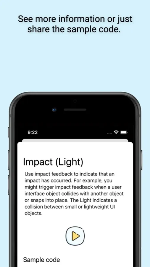 To use this app, simply open the app and tap on the haptic interaction to feel it for yourself. It also provides useful tools such as descriptions, sample code and links to further information.