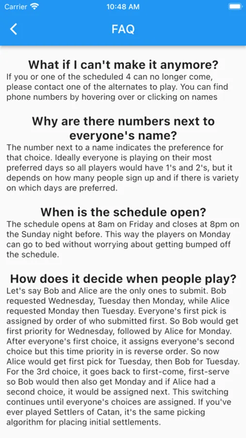 The app also reminds players to RSVP the day before play so everyone remembers to come on the days they signed up for.