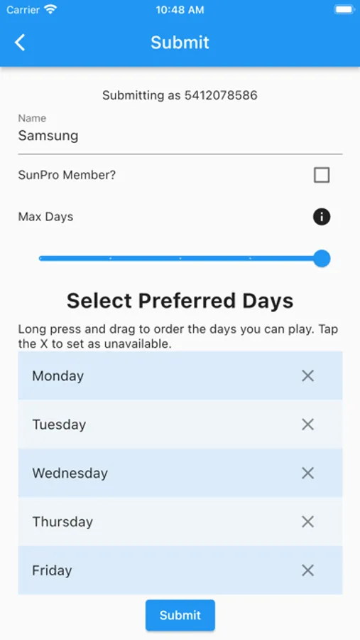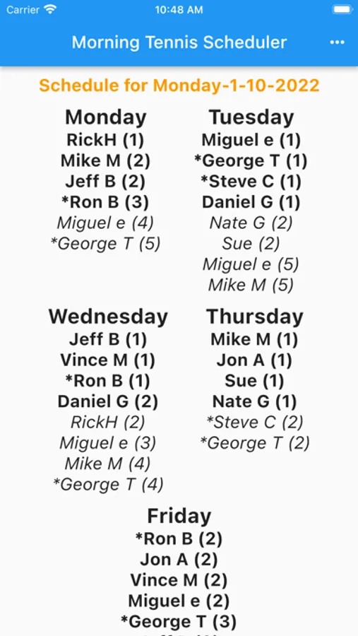 Use Doubles Scheduler to allow players to rank which days of the week they'd like to play. Then the scheduler automatically sorts them by preference. Communicate quickly with players on starting group texts.