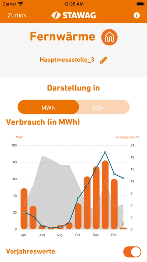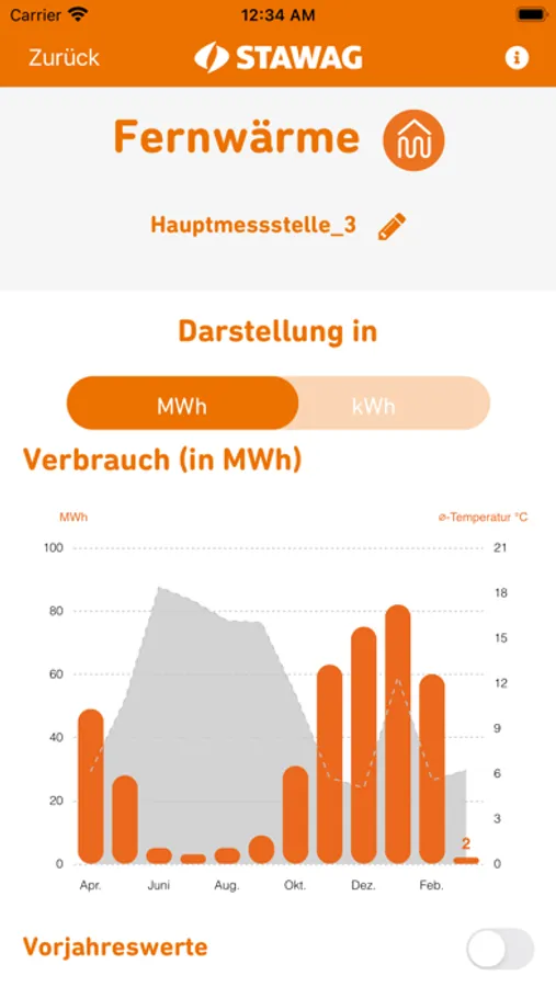 Dies ist die offizielle STAWAG-App zur Visualisierung der monatlichen Wärmeverbräuche im Rahmen der Fernwärmeversorgung und Heizkostenabrechnung. Voraussetzung zur Visualisierung ist ein Objekt/Liegenschaft das über eine Fernwärmeversorgung oder für das die STAWAG eine Heizkostenabrechnung erstellt. Grundlage für diesen Service sind die technischen Voraussetzungen in dem Objekt/Liegenschaft. In der App werden Ihnen ihre Wärmeverbräuche der letzten 12 vergangenen Monate u.a. als Balkendiagramme dargestellt. Ein Vergleich mit den Wärmeverbräuchen aus dem Vorjahr ist möglich. Sollten mehrere Wärmezähler in einer Liegenschaft verbaut worden sein ist eine Gesamtansicht der Zähler, sowie eine Einzelansicht möglich.