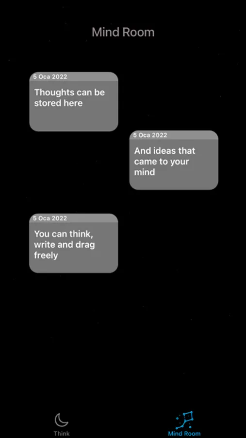 Night Thought is a relaxing and simple place where you don't get distracted. It's like writing your own thoughts into the sky. Talking with stars, and even watching your thoughts become stars.