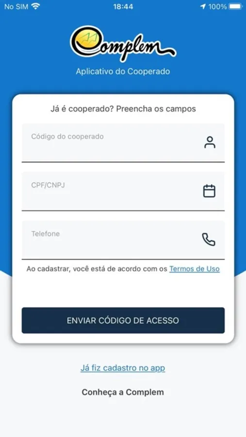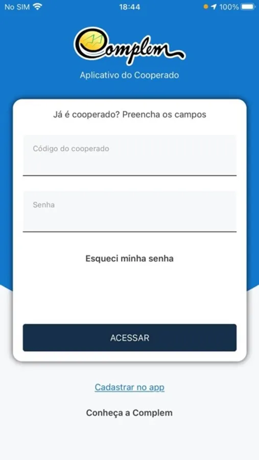 O aplicativo foi desenvolvido pela Complem sem custos para os seus cooperados e o acesso é através da matrícula do cooperado na cooperativa.