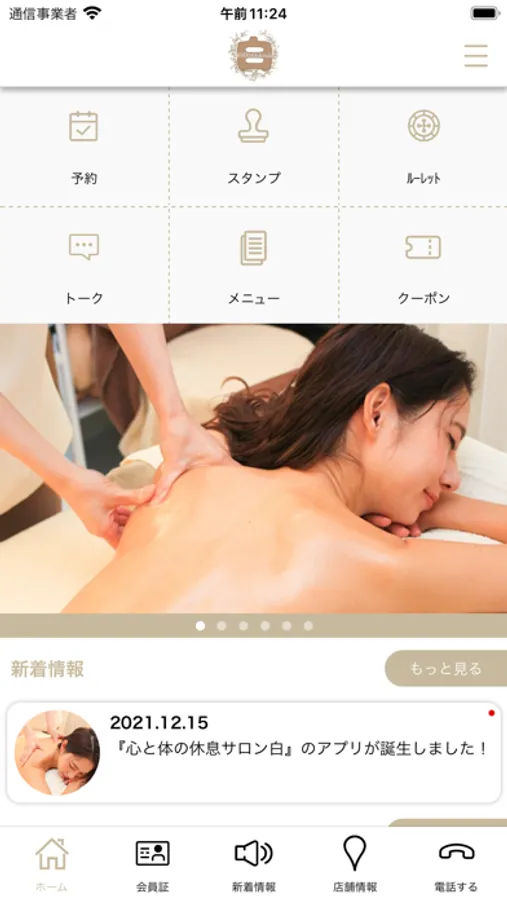 心と体の休息サロン白の公式アプリが登場。アプリを通して『心と体の休息サロン白』の新着情報やお得な情報をリアルタイムで受け取ることができます。また、いつでもお手元のスマートフォンから、メニューやご希望のお時間帯のチェック・ご予約などが可能です。アプリをインストールしていただくことにより『心と体の休息サロン白』を、より便利に身近にご利用していただけます。