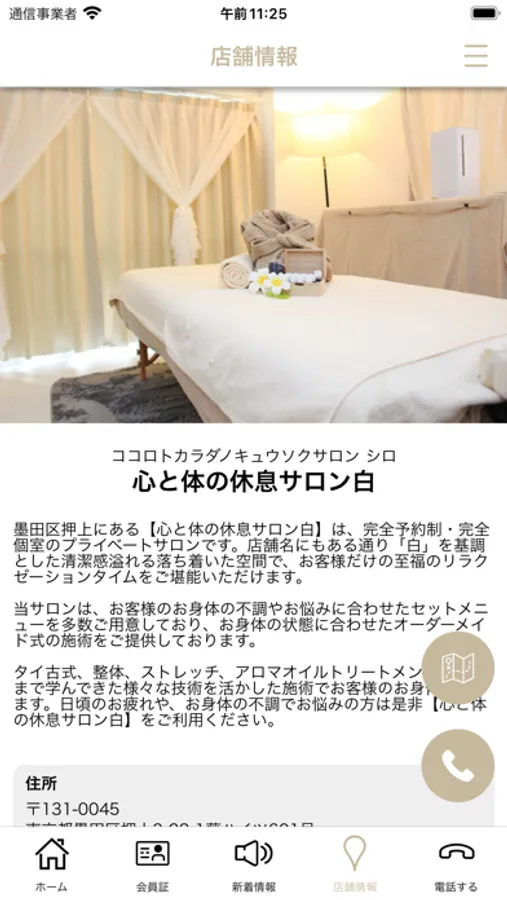 店舗のマップが表示され、地図アプリとも連携しているので、初めてのご来店の時も簡単に見つけることができます。