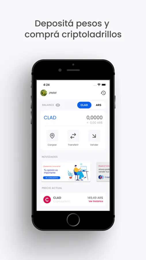 - Deposit argentinian pesos (ARS): after a user makes a bank transfer to the company bank account, the amount is credited in the app.