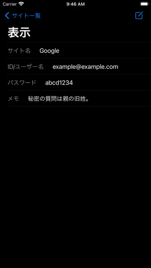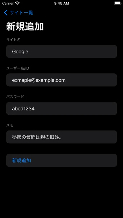 忘れてしまいがちなIDとパスワードを記録するアプリです。