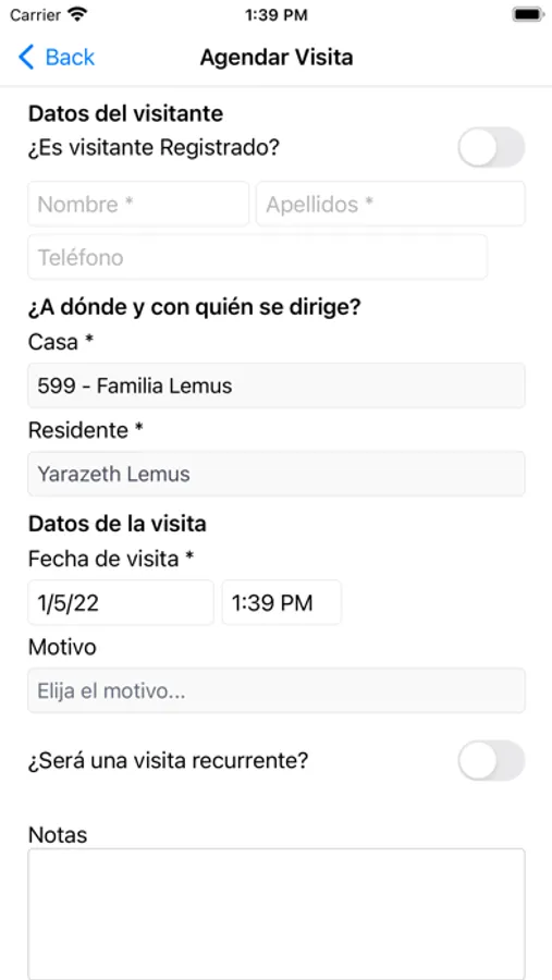 Aplicación para residentes, donde pueden administrar sus visitas y ver el historial de quien accede a su domicilio.