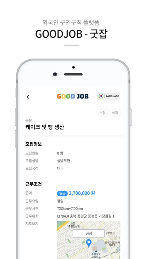 - 굿잡은 한국 사장님과, 외국인 직원의 소통을 해결하기 위해