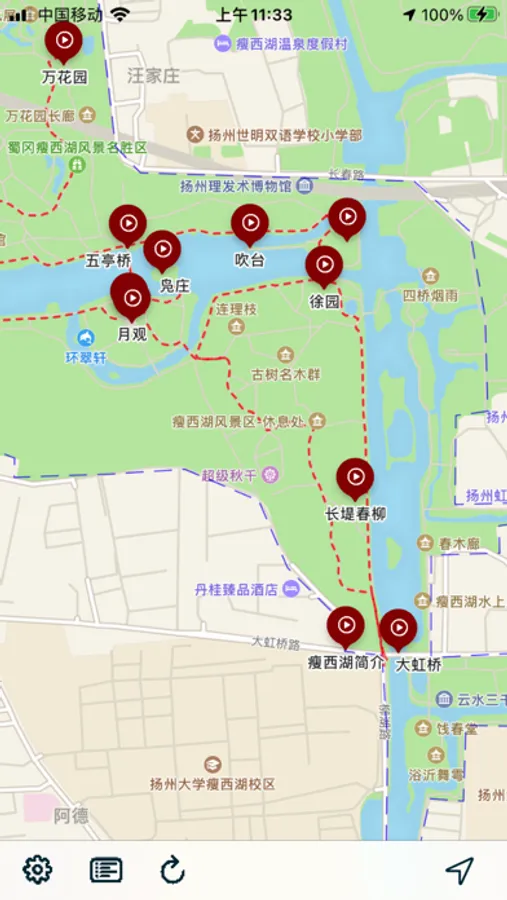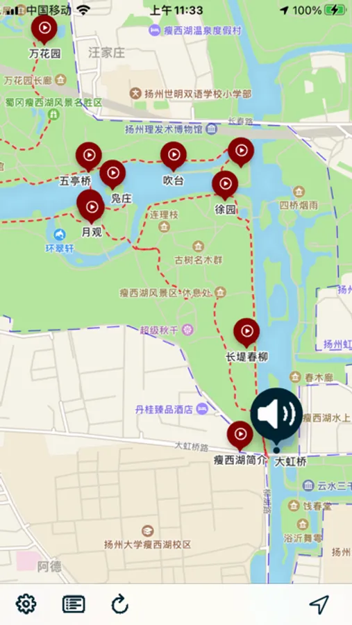 The audio guide introduces the sights of Yangzhou Slender West Lake.