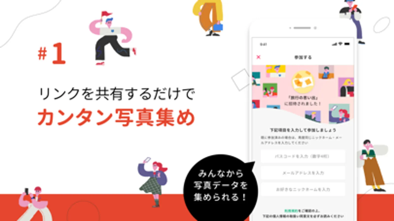 専用リンクとパスコードを共有された人は誰でも参加し写真を追加することができます