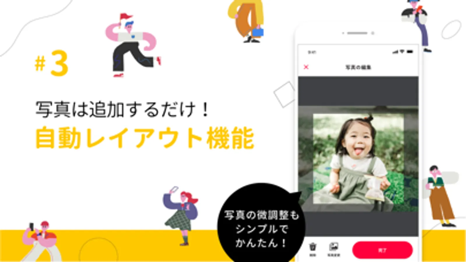 ③大量の写真も自動レイアウト!!写真の微調整もシンプルでかんたん!