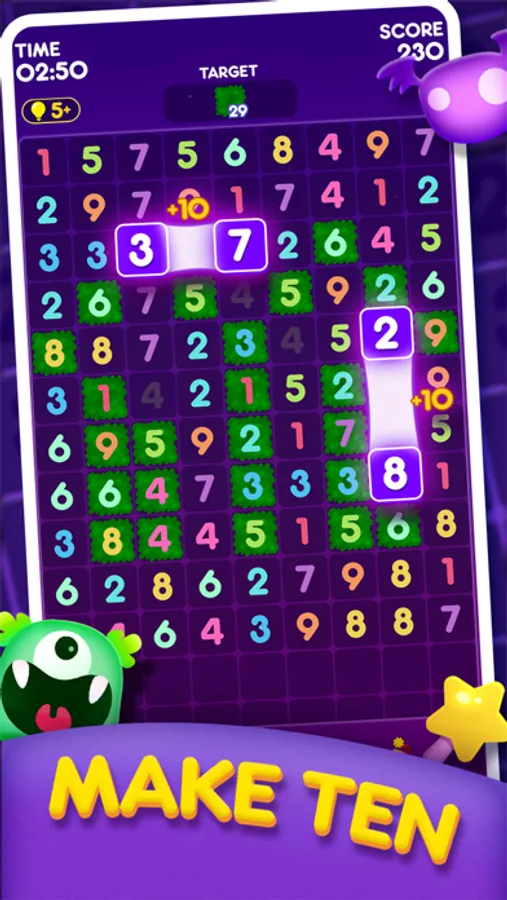 We design lots of special levels in it, you should complete different targets while match numbers, such as catch a bat 10 times or collect 5 stars. There are so many funny designs waiting for you to discover and you won‘t stop playing this super addictive and relaxing puzzle game.