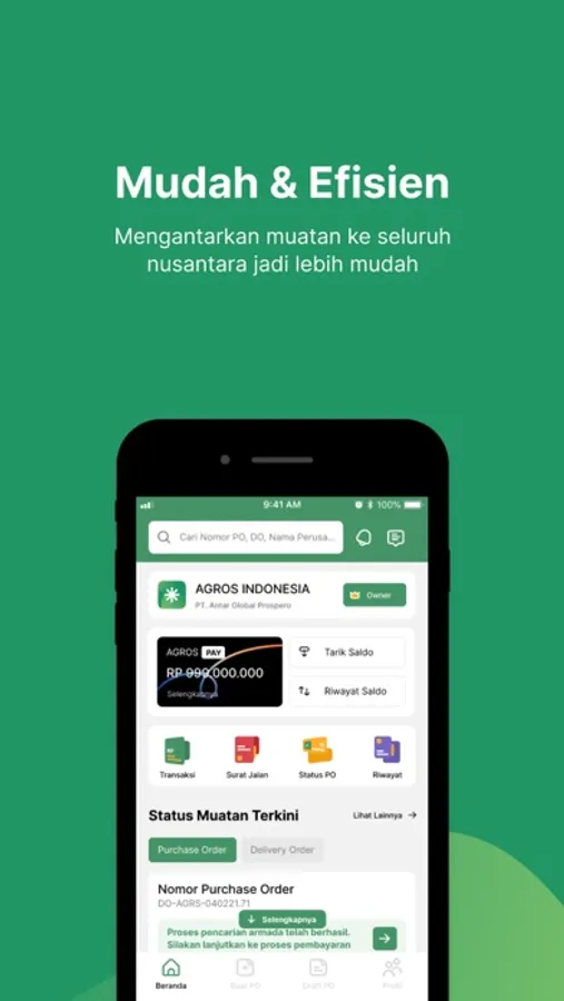 AGROS adalah sistem terpadu satu pintu (one stop service) yang berfokus pada pelayanan jasa logistik muatan berat. Agros menawarkan mitra terlatih, efisiensi dan transparansi sistem transportasi, kemudahan akses untuk layanan pemeliharaan hingga fitur transaksi.
