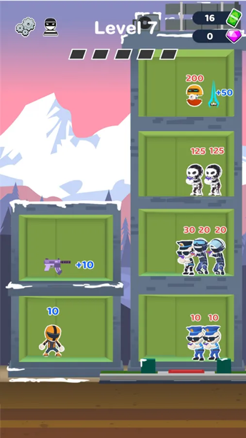 Many guards are defending the tower. Your mission is to defeat them and take back the stolen treasure. There are multiple types of weapon you can choose to help you break into the tower.