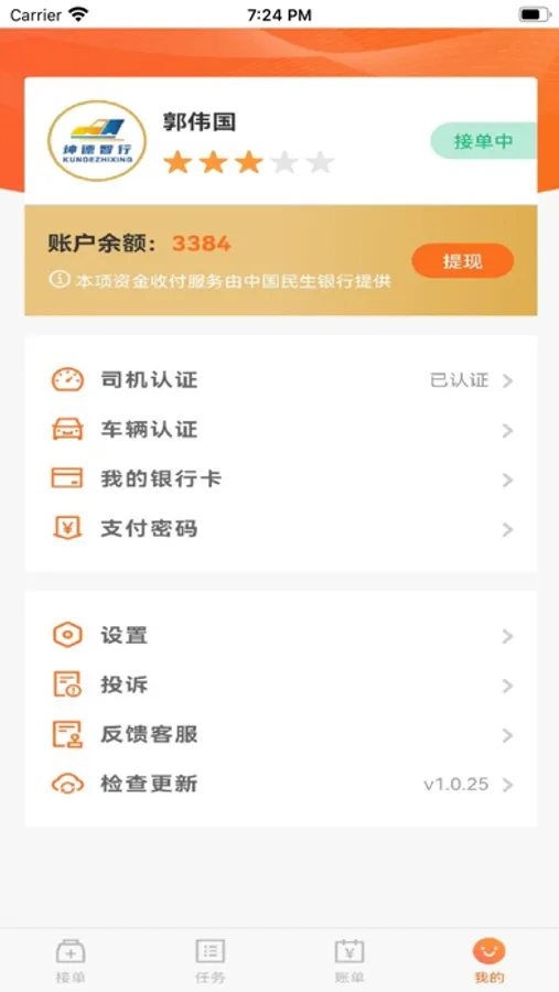 坤德智行司机是一款基于移动互联网技术开发的移动物流信息app。致力于公路运输行业,为车找货、货找车提供全面的信息服务,全面满足不同企业的货运物流运输需求。司机可在App上快速找货、查看运输轨迹、进行费用结算,在线呈现用户下单、跟单、回单等一条龙标准化的物流服务过程。通过科技创新,实现物联网与现有互联网整合,提高运输市场业务撮合的效率,创造更丰富的社会价值。
