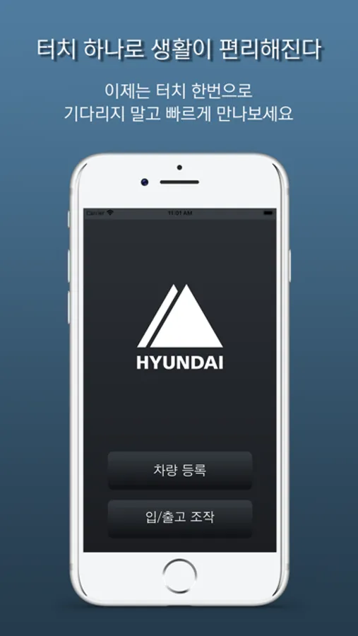 스마트폰 블루투스를 활용하여 터치 없이 편하고 위생적으로 주차타워를 컨트롤한다는 의미를 가진 현대엘리베이터의 모바일 앱