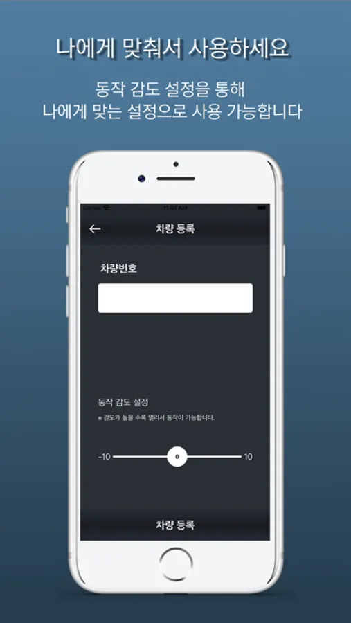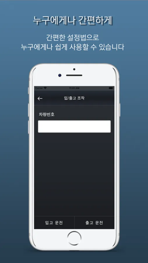 차량번호를 등록한 후 휴대폰을 근접하게 태그하여 입고 운전과 출고 운전 동작을 합니다.