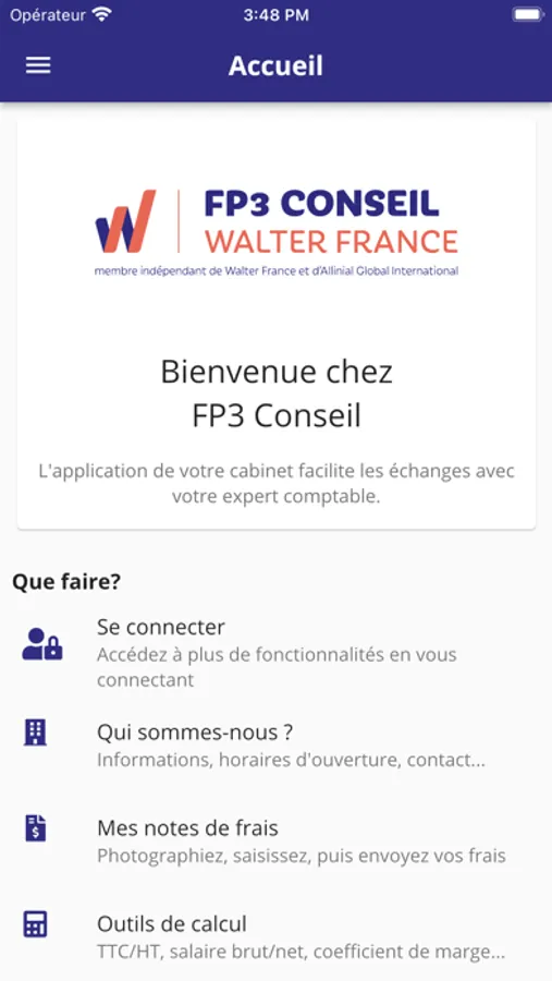Because the world is changing, we offer you a handy application for managing your online account 7days/7 and 24h/24. This ease of use allows you anytime access to your documents, consult the news of the firm, or to gain visibility on various activities related to your record. We wish you a nice navigation!