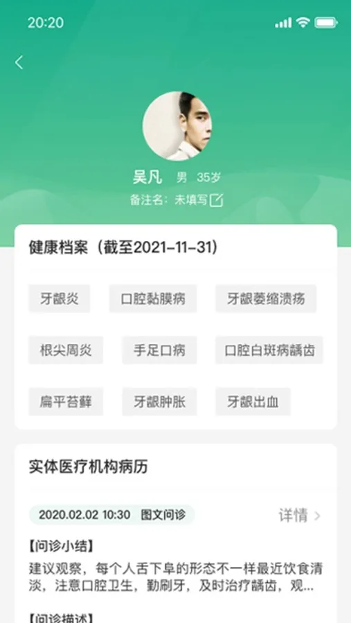 【健康档案】了解患者既往病史及历次问诊小结,支持实体医疗机构病例上传