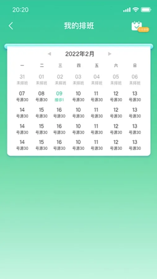 【查看排班】通过排班表查看自己每日号源及月度排班情况