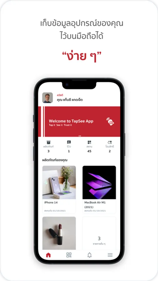 • การดูประวัติการใช้งาน: Tapsee แสดงประวัติการใช้งาน NFC และ สแกน QR Code ที่เคยใช้งาน เพื่อย้อนกลับไปดูรายละเอียดสินค้าได้