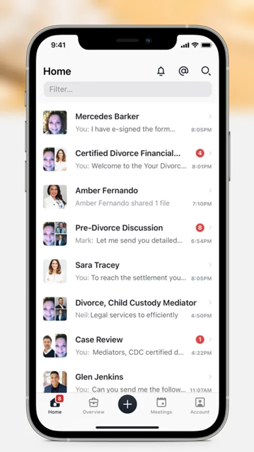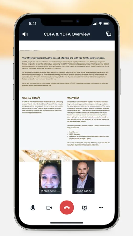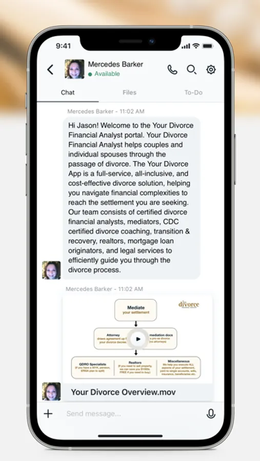 Use Your Divorce to securely collaborate with our team via instant messaging, schedule video meetings, e-sign documents, upload, share & review digital files, manage your calendar, access your divorce plan, and more.