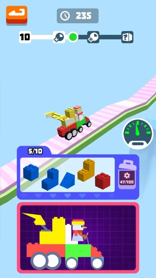 2.Make good use of the obtained building blocks and add accessories to your car, so that your car can rush through the nodes of the track faster and get higher scores