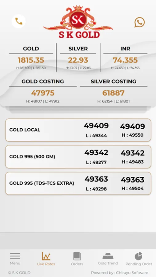 Our app shows the fastest updated LIVE RATES of gold.