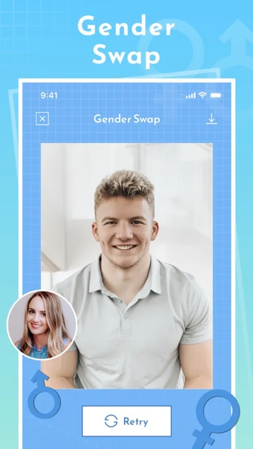Have you ever imagined what you would look like after changing to the opposite sex? Tap the toggle button to check your brand new face.