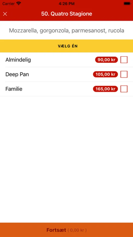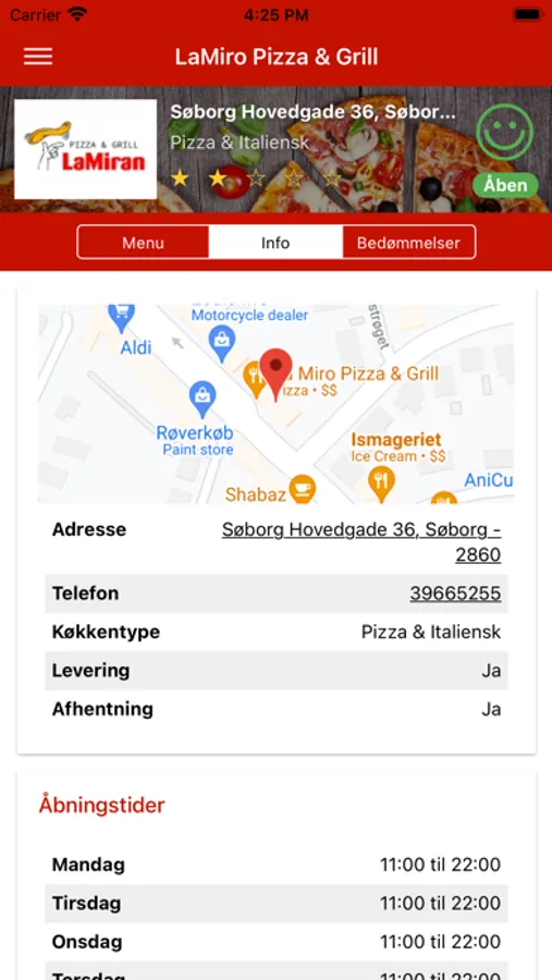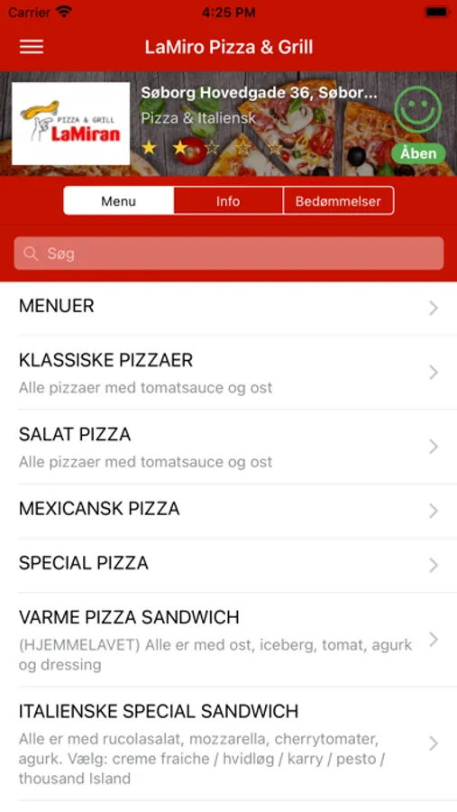 Bestil pizza, burger, pasta, m.m. med få tryk, nemt og hurtigt!