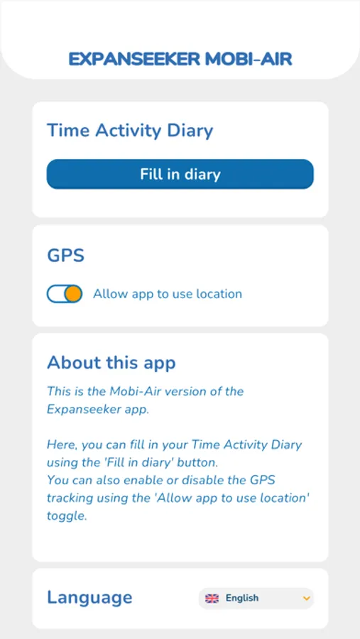 The app is developed and maintained by Games for Health (GfH) in collaboration with MOBI-AIR partners to collect specific data for the study. The app records location and includes a time-activity diary.