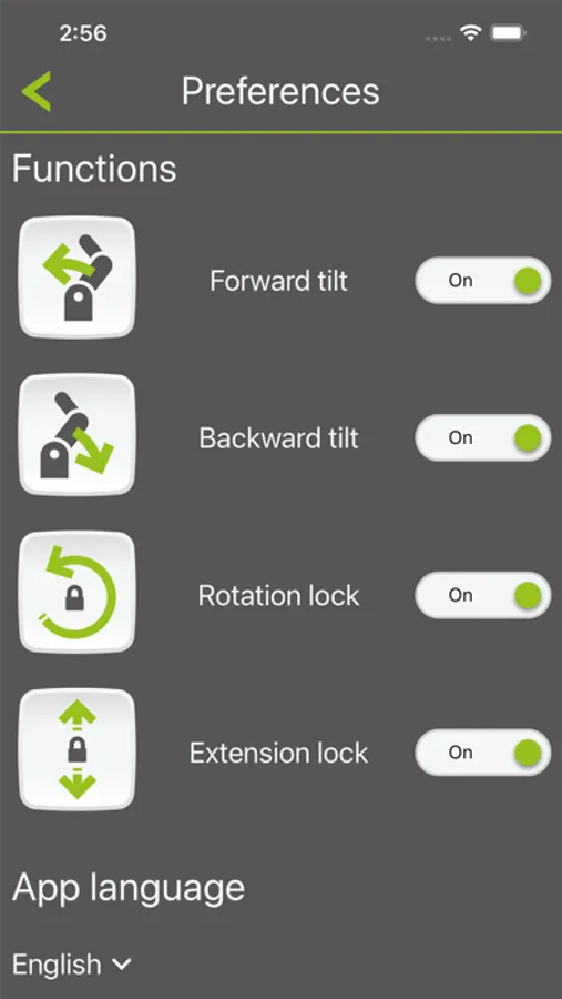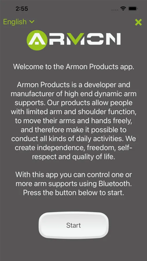 The Armon wireless control app allows you to control all functions of the Armon Salvum arm support.
