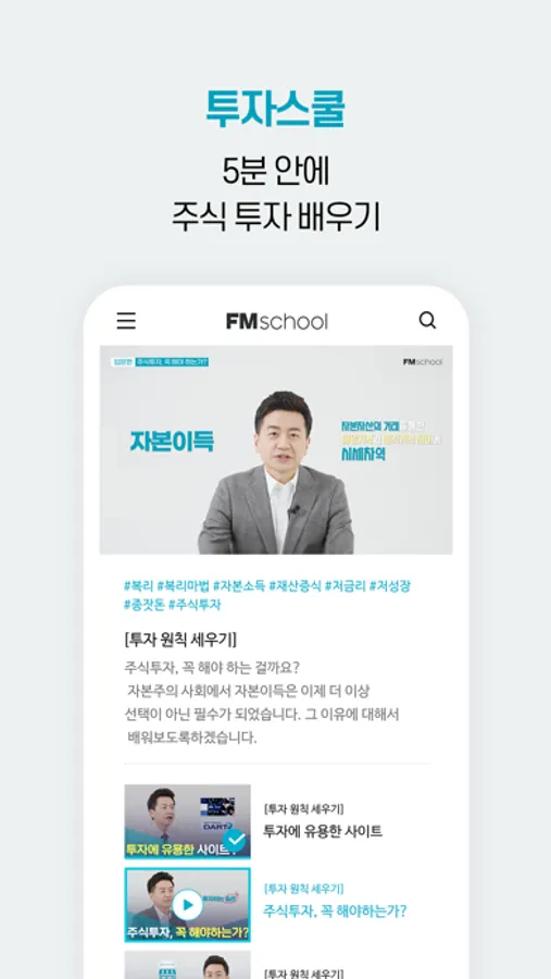 지금 FM스쿨을 다운로드해 가장 스마트하게 자산을 늘려보세요!