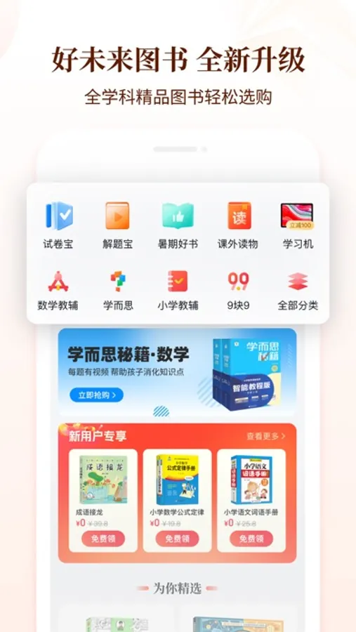 学而思图书正式更名为好未来图书,好未来图书App是好未来旗下专注于为中小学生提供含教辅、读物、绘本、智能学+等多元化图书产品。致力于成为中小学生一站式选书用书平台。