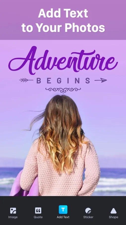 We get you covered. The app provides advanced features to add text to your photos and to edit images, including plenty of filters and effects, background eraser, layers and other tools. It includes tons of fonts, huge collections of stickers, quotes and shapes and a large library of images. The app is super easy to use and supports printing in high-resolution.
