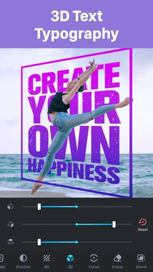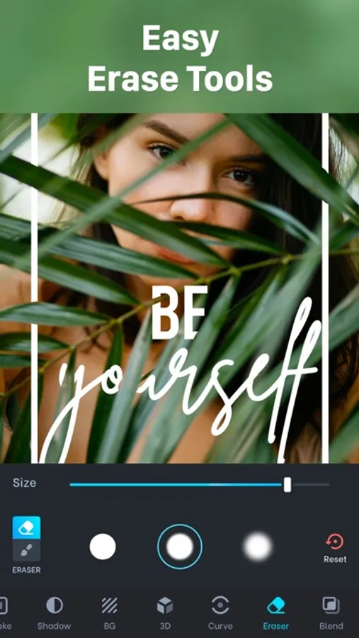 3. Premium editing tools: curve text, 3D text, eraser tool.