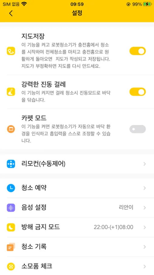 한국 사용환경에 최적화된 알고리즘을 통해 청소루틴을 제공하고 바닥감지를 통해 조용하며 강력한 청소를 지원합니다.