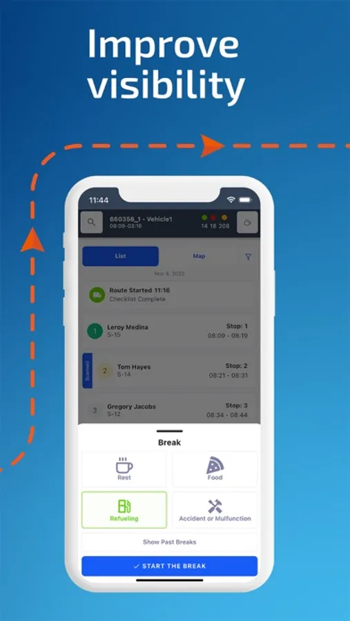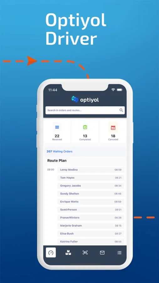 • Ability to see all orders on the map or as a scrollable list with detailed order information and ETAs