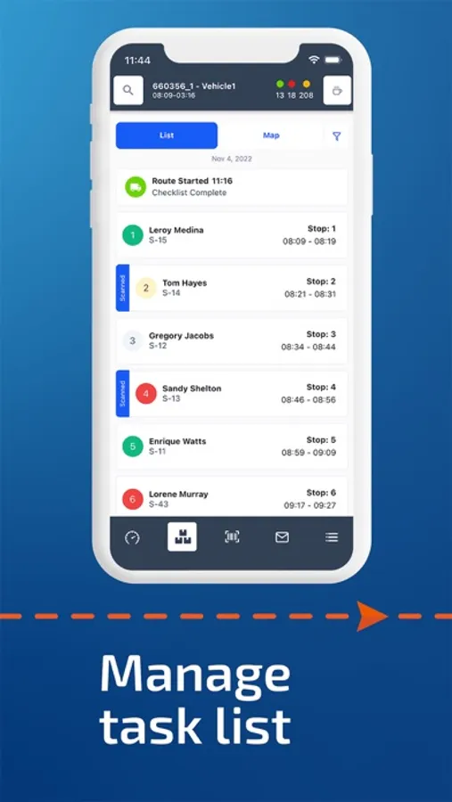 • Barcode reader that works with the device's camera to make sure right orders are loaded to each vehicle